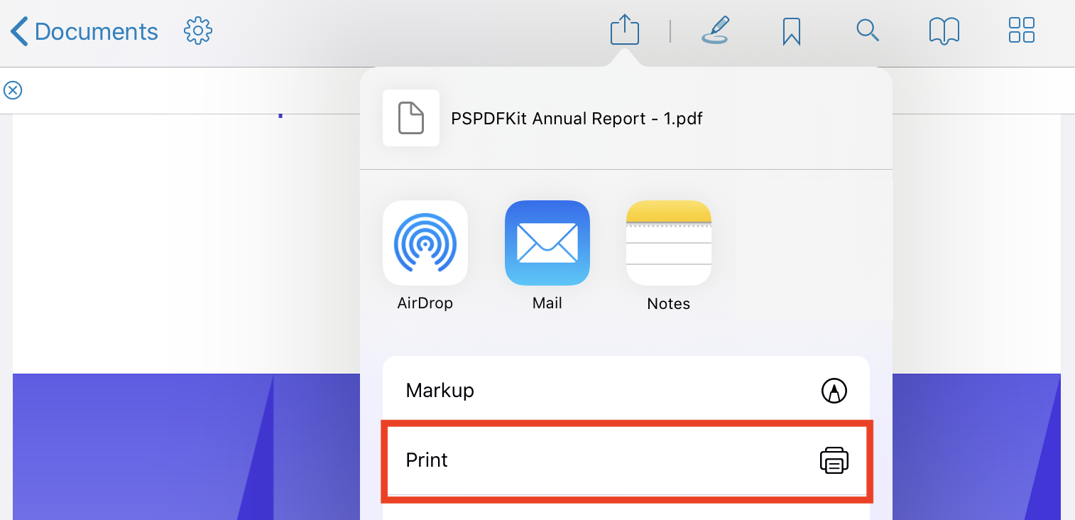 This article describes how to print a PDF in PDF Viewer for iOS via Airprint.