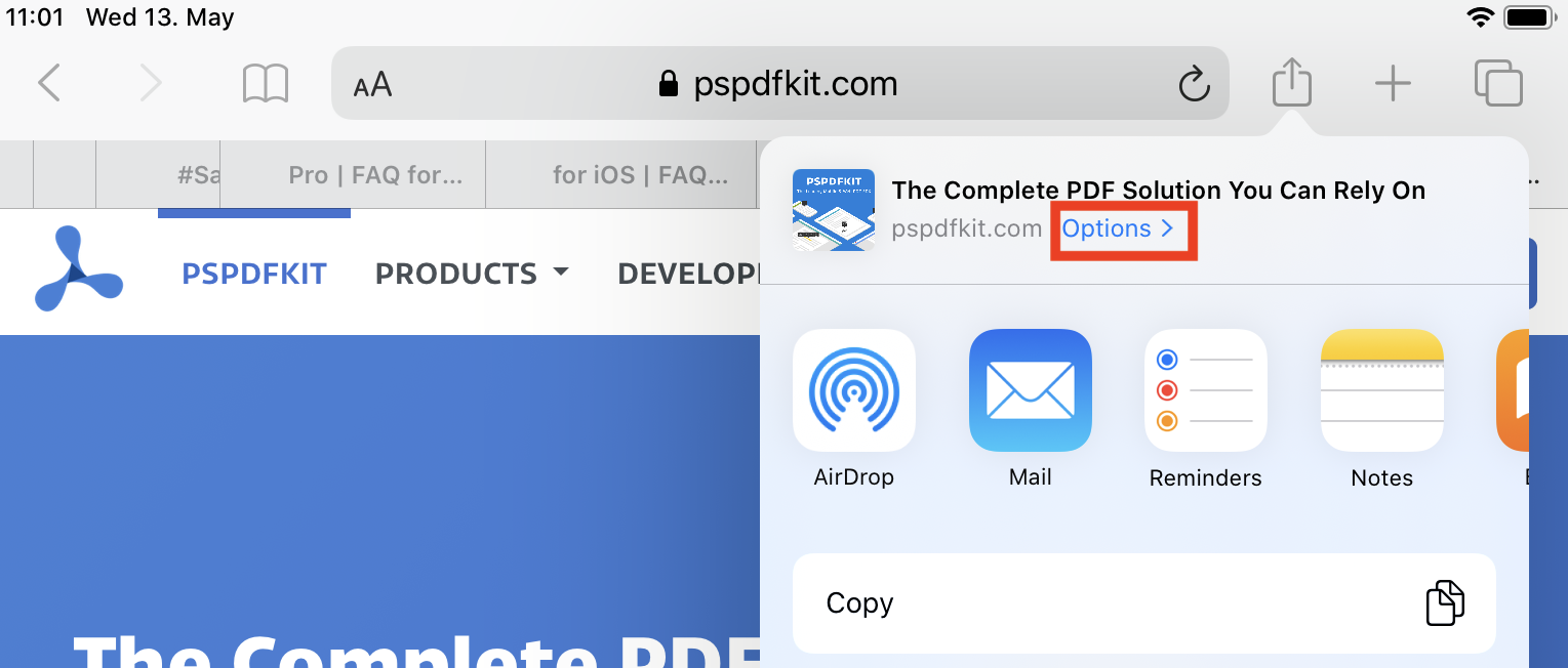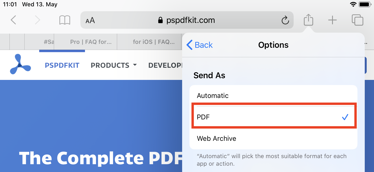 [iOS] How do I save a file from Safari to PDF Viewer?