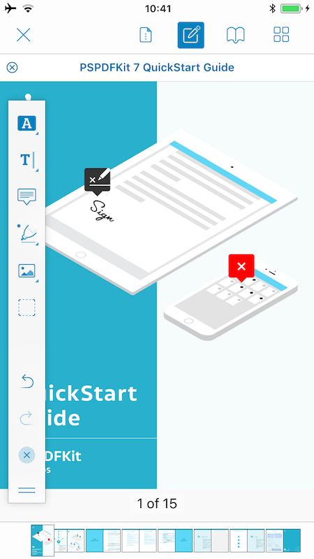The annotation toolbar is one of the most commonly used parts of PDF Viewer. It is flexible and can be docked either to the left, the top, or the right side of your screen. The appearance can vary a lot, depending on screen size, device orientation, or the position of the annotation toolbar.