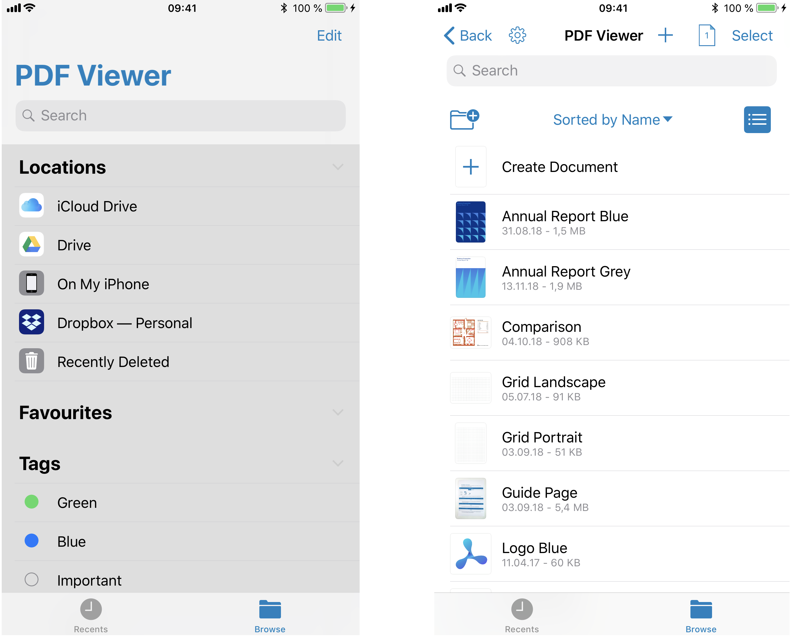 Note: This currently doesn't work for folders due to a bug from Apple with the iOS 11 Document Browser. We already reported that and are hoping for a fix.