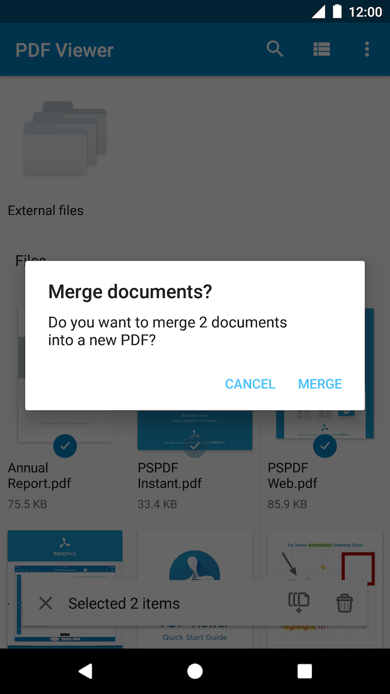 Document merging takes organization and publishing workflows to a completely new level. Simply select two or more PDF files that you want to append, and PDF Viewer Pro will combine these files into a single new PDF in no time.