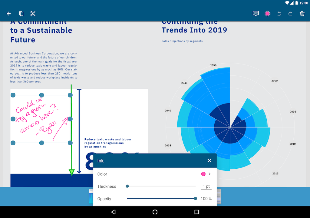 Peer reviews are an essential workflow of many professional teams — two heads are better than one! PDF Viewer Pro gives you the tools to add replies to annotations and write reviews directly inside a PDF. This feature is fully compatible with the PDF format and Adobe Acrobat.