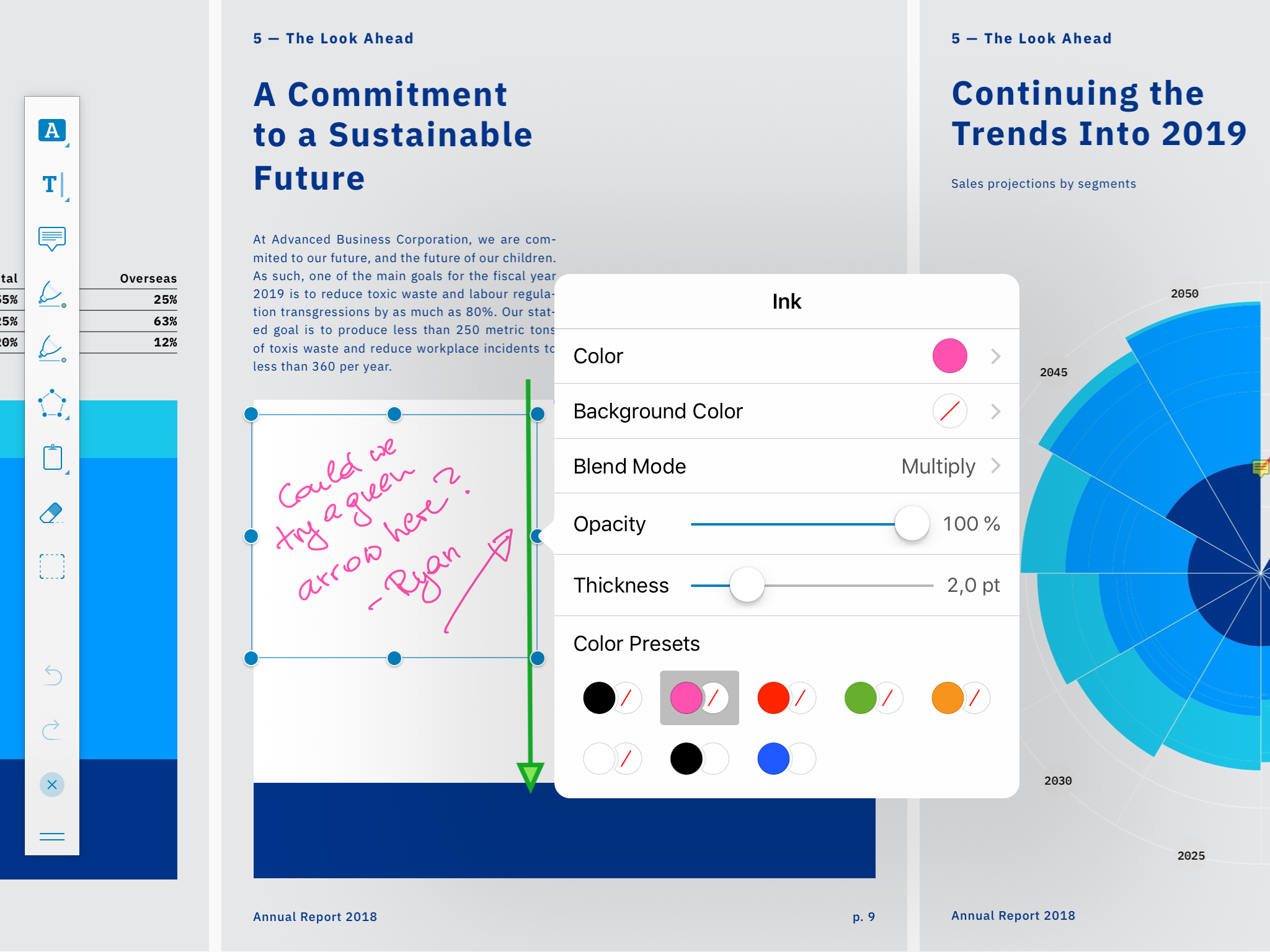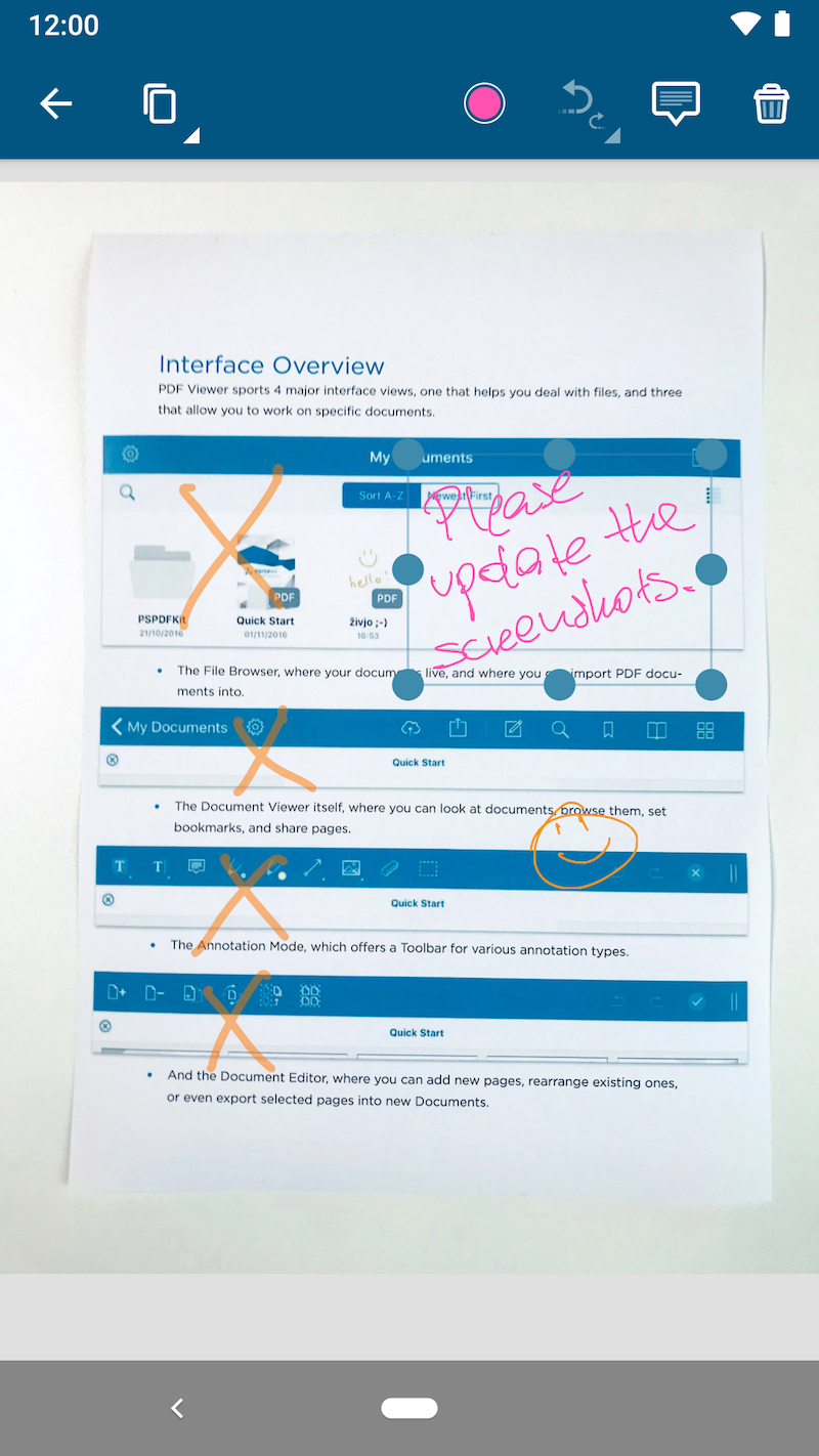Annotate your PDF documents easily by highlighting text, adding notes, freehand ink drawing, adding images, and more.