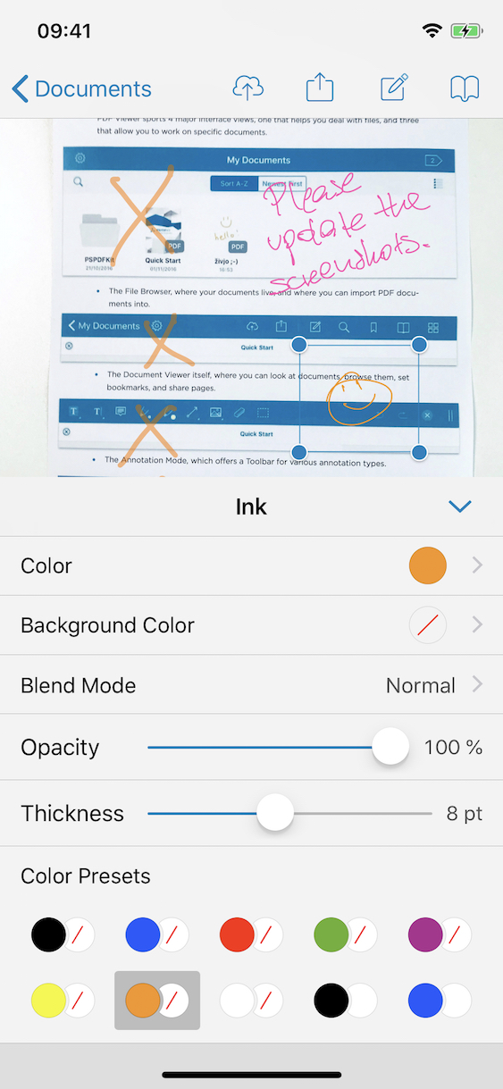 With PDF Viewer Pro, image support is brought to a whole new level. The editing data is stored directly inside the image file, making image documents first-class citizens for annotating, sharing, and collaborating, just like PDF documents are. And the best part: Image documents are fully compatible with all third-party image viewers, which will simply display them like any other image file.